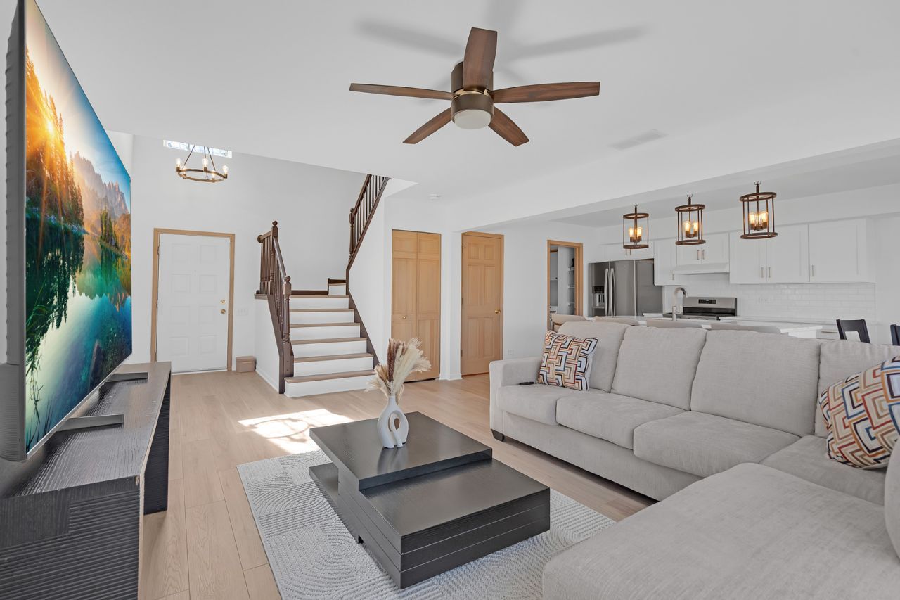 Welcome to this beautifully updated Devonshire model end-unit townhome, ideally located in Streamwood's highly desirable Sherwood Forest neighborhood. Tucked along a picturesque, tree-lined street, this home offers a rare blend of privacy, natural beauty, and modern updates. Step inside to a dramatic two-story foyer filled with natural light, leading into an open and airy floor plan designed for both everyday living and entertaining. The spacious living and dining areas feature expansive windows that bring the outdoors in, creating a bright and inviting atmosphere throughout. Fresh paint throughout the home adds a clean, move-in-ready feel. Upstairs, the generously sized primary suite features vaulted ceilings, abundant closet space, and a private en-suite bath complete with dual sinks and a separate shower. A second spacious bedroom and full hall bath provide comfortable accommodations for guests or family. The expansive loft overlooking the foyer offers incredible flexibility, ideal for a home office, media space, or easily convertible into a third bedroom. Enjoy your own private outdoor retreat on the patio, where you can relax and take in the tranquil natural surroundings. This home has been thoughtfully improved with approximately $40,000 in upgrades, including a new furnace and A/C (2025). You are perfectly located near parks, forest preserves, shopping, dining and major highways. This right here is truly the one you've been waiting for. Welcome home!